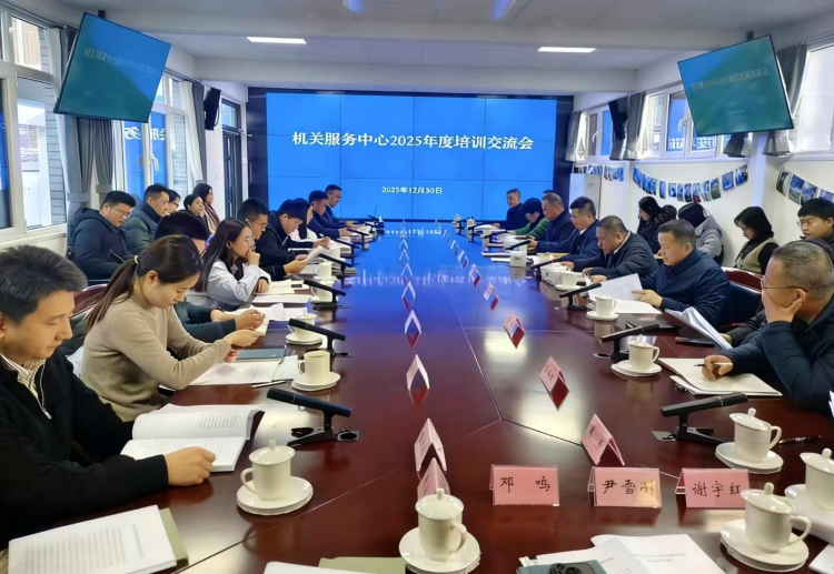 为深入学习贯彻党的二十大和二十届历次全会精神,认真落实习近平总书记关于教育的重要论述和关于机关事务工作的重要指示精神,深入贯彻习近平总书记“7·9”重要讲话和“7·29”重要指示精神,推动年度“双融双促”示范行动和人才队伍能力提升行动落地见效,2025年12月30日下午,机关服务中心组织召开2025年度培训交流会。中心党委书记、主任潘俊强出席会议并作总结讲话,党委委员、副主任郭砚扉主持会议。中心党委委员、各处室代表、团支部书记、青年理论学习小组代表及培训交流发言人员共35人参加会议。